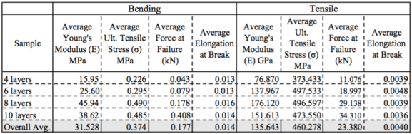- Bending: # of Layers vs. Modulus & Ultimate Tensile Stress (MATLAB)