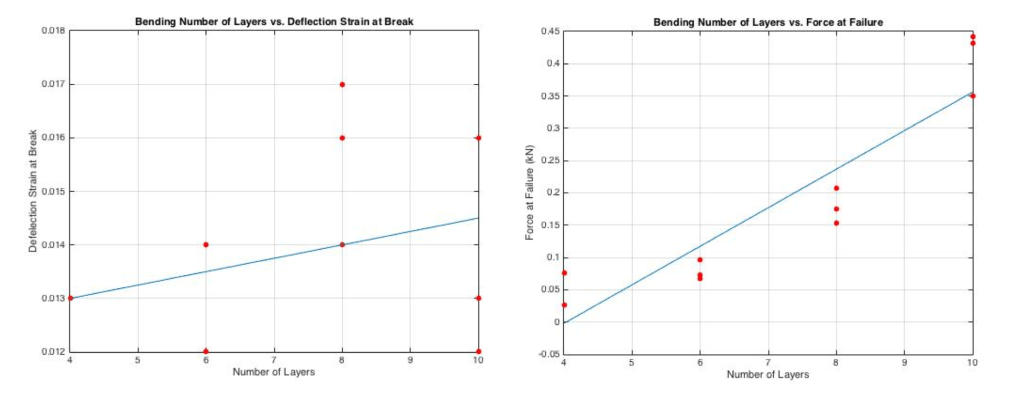 - Bending: # of Layers vs. Deflection Strain & Force at Failure (MATLAB)