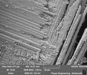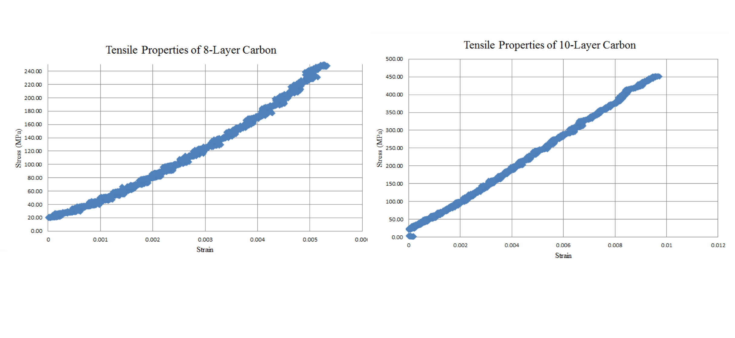 Our Professor for Science of Materials had us conduct a term long project pertaining to a topic we were learning in class. My group chose to explore properties of carbon fiber in an epoxy matrix. During this experiment, we investigated the performance of a carbon fiber composite under various loading conditions (bending and tensile). The purpose was to analyze the effects of various numbers of carbon fiber layers (4, 6, 8, and 10 layers) on the material’s tensile and flexural properties. The failure mechanism in each condition was also investigated using scanning electron microscopy (SEM). Attached below are some of the SEM images of various layers at failure sites along with some of our figures for data analysis.