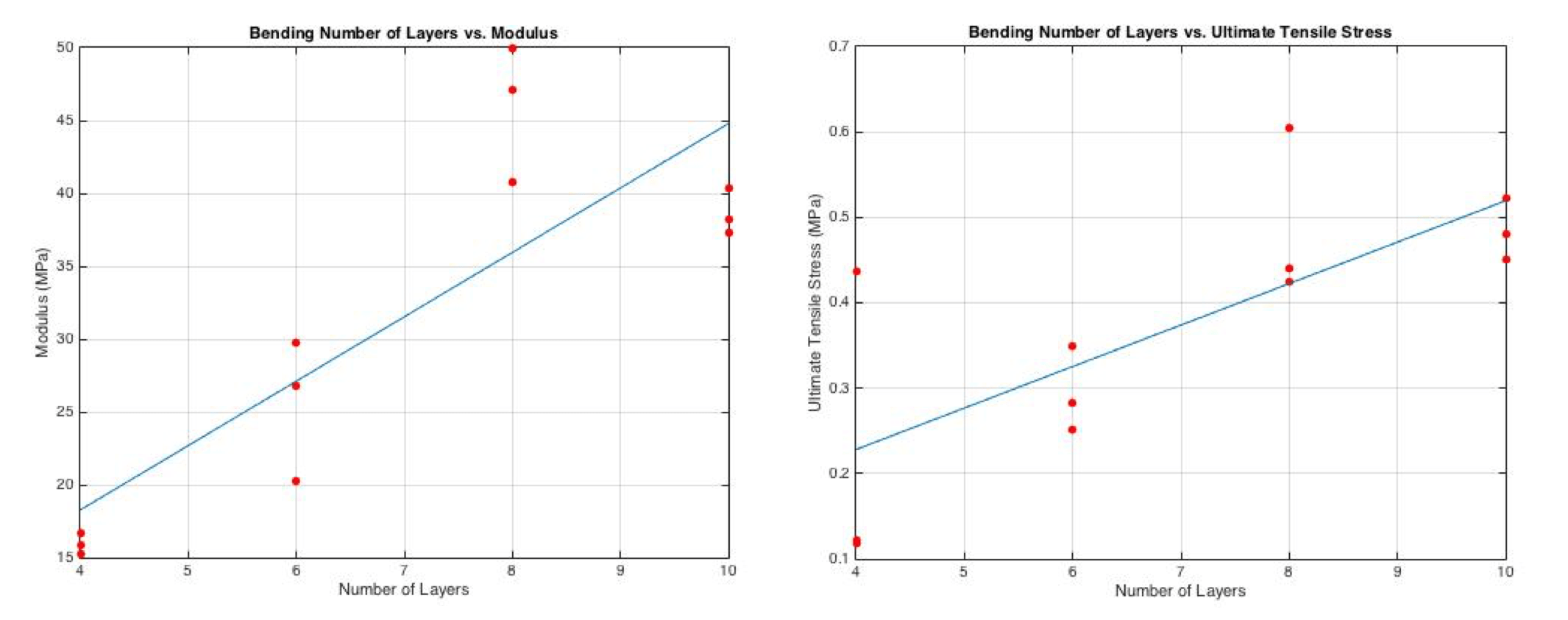 - Bending: # of Layers vs. Modulus & Ultimate Tensile Stress (MATLAB)