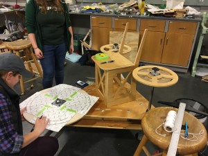 Another problem that we encountered was the bolts of the face-mounted shaft collar shearing through the wooden foot wheel in our first prototype. This inhibited our ability to apply torque to the foot wheel without widening the bolt holes in the wheel and eventually breaking the wheel. To mitigate this problem, we created 1/8″-thick aluminum plates for the top and bottom of the foot wheel. These plates contained two bolt holes for the shaft collar, four holes to mount it to the wheel, and a pocket in the middle for the shaft to go through. The top and bottom plate were then bolted tightly, clamping the wheel so that the friction between the metal and the wood would allow the shaft to turn the wheel without the bolts shearing into the wheel. The same improvement was applied to the hand wheels, which also experience large torques.