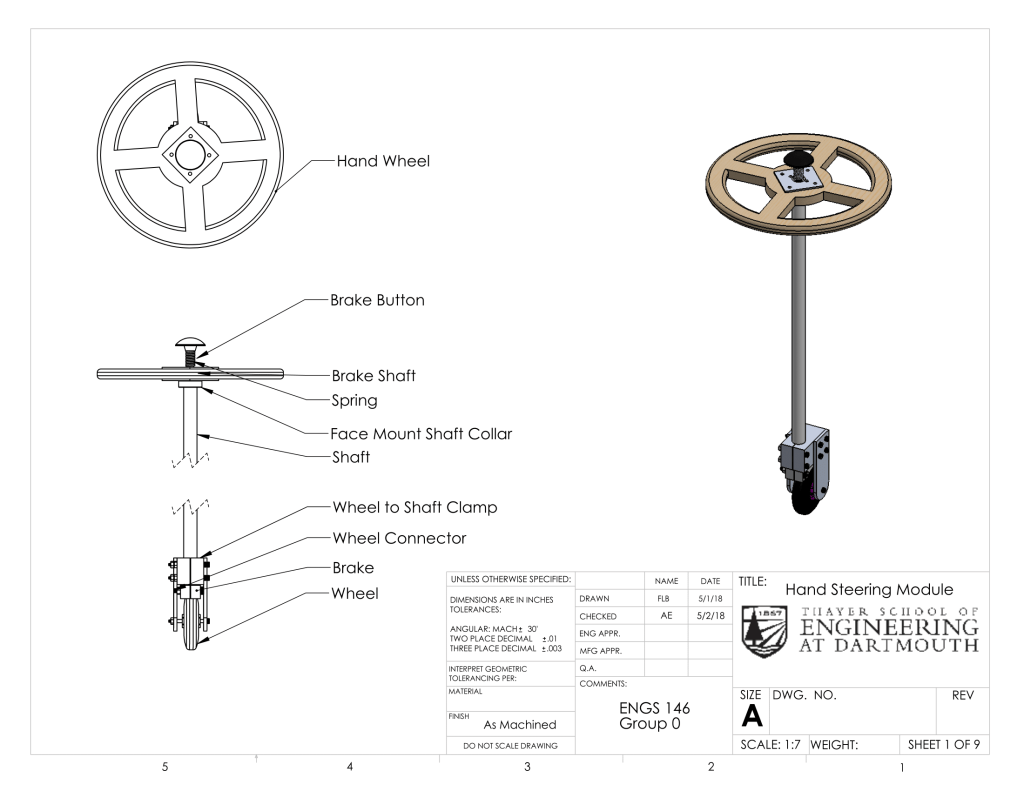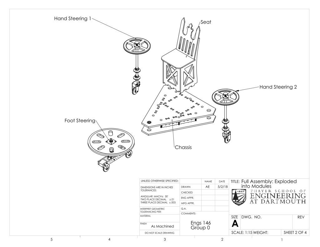Overall, we had a great experience in this course. We learned about a wide variety of topics, gained experience in the machine shop, and worked well together as a group. The competition day was a fun way to close out a challenging project. Based on the reactions of spectators at the competition and other Thayer students who took the machine for a spin, we think that our vehicle could be a viable commercial product for a fun toy. It would be particularly fun in a setting with linoleum or poured concrete flooring.