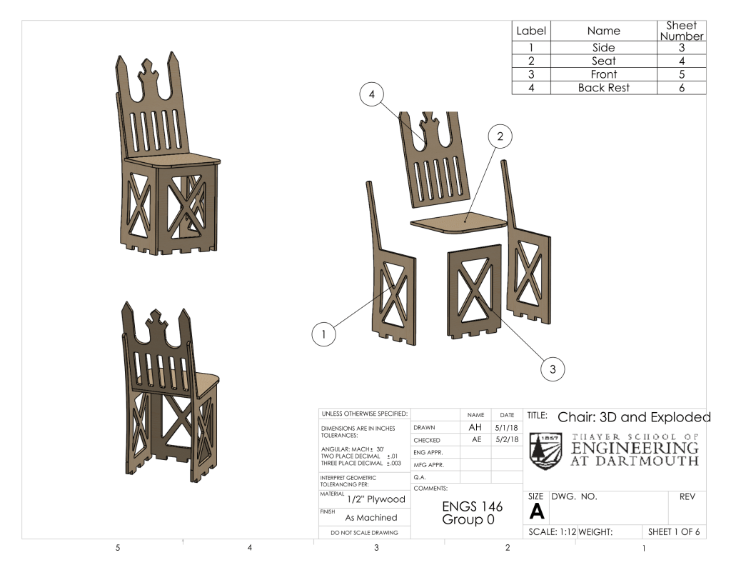 Right: SolidWorks Static Loading Study of Chair: Factor of Safety
